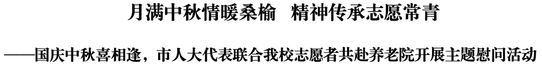 组织学生参与敬老慰问活动,既是引导青年学生践行社会主义核心价值观的重要实践,也是高校履行社会责任的具体体现,是我校“立德树人”建设成果的缩影,是“行走的思政课”。在学校党委坚强领导下,团委积极探索落实“立德树人”根本任务长效机制,鼓励引导广大青年学子利用课余、假期时间,持续深入社区、乡村、公益机构,努力将爱心传递到最需要的地方,在生动的社会实践中见世面、长才干、受考验,以青春之我,为中国式现代化挺膺担当!