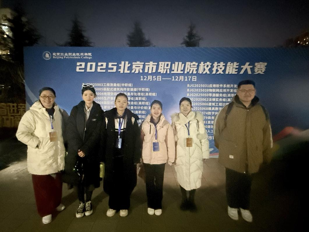 2025年12月15日北京市职业院校技能大赛导游服务赛项(高职组)在北京工业职业技术学院举行,该赛项在全国职业院校技能大赛的指引下进行了较大的改革,在赛项不断更新变化的情况下。旅游专业参赛师生及时调整备赛方案,不断优化备赛项目,最终由杨静、梁苏莹老师指导的邓子晨、崔浩洋、王海屹、张娜获得北京市三等奖,由高欣、陈园园指导的张衡、刘湘妍、孙慧珍、杨雨瑞获得北京市三等奖,获奖率100%。